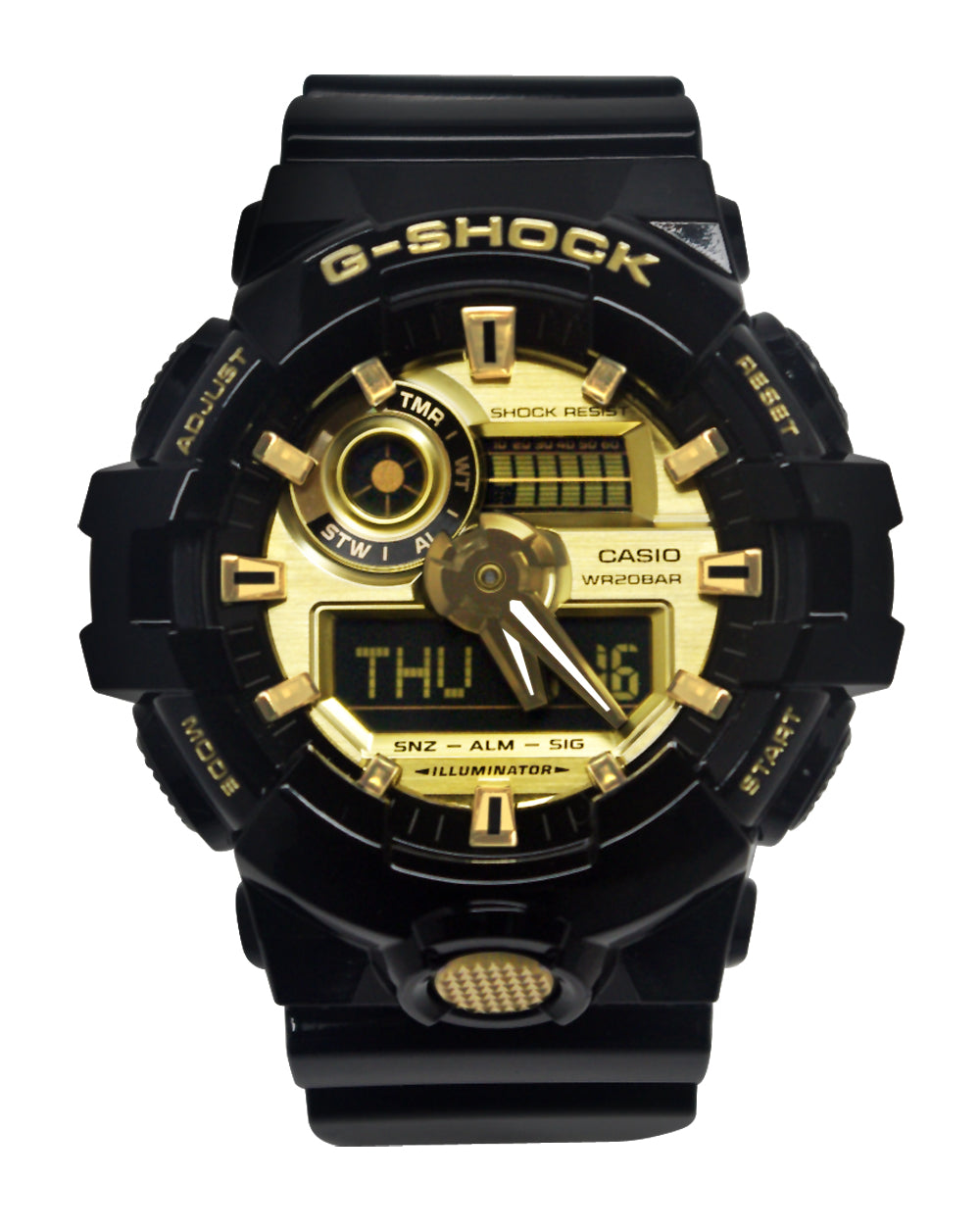Casio GA710GB-1A G-Shock Black Gold Analog Digital Dial Resin Band Watch