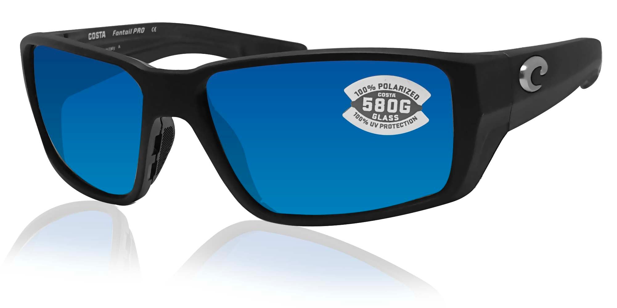 Costa Del Mar Fantail Pro Black Blue Mirror 580 Glass Lens Sunglasses