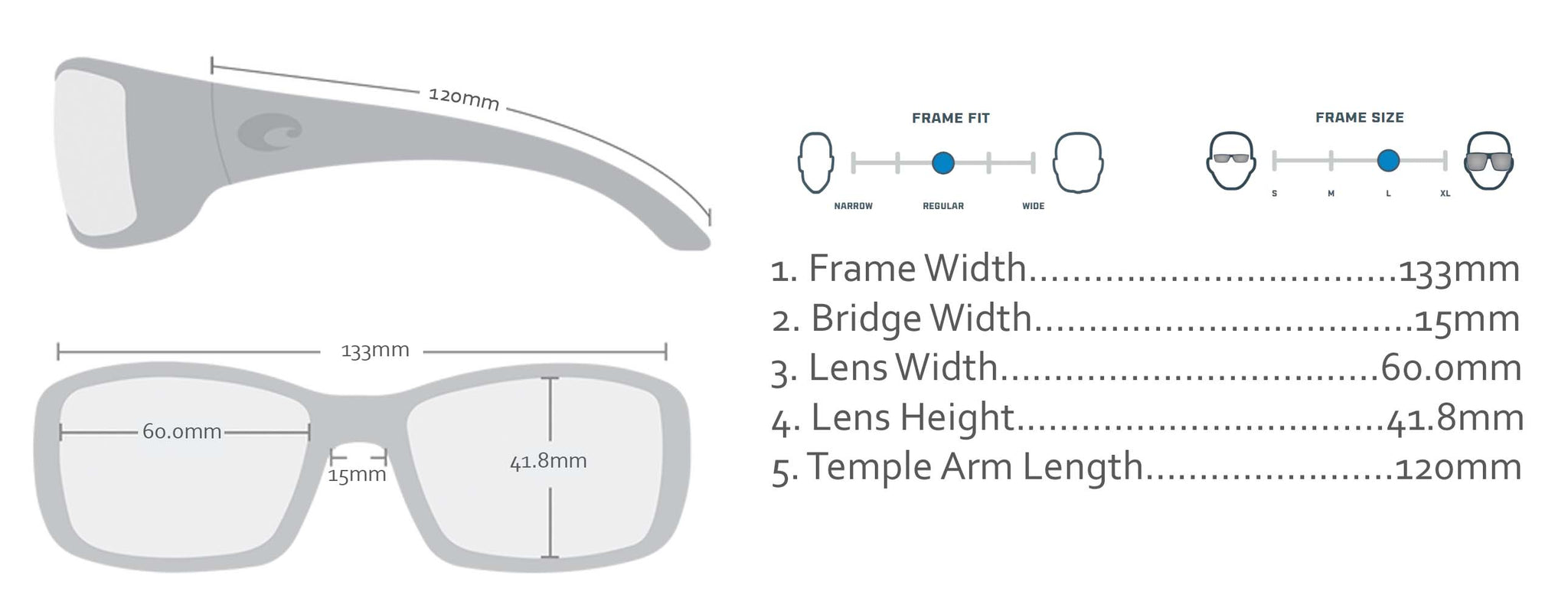 - Lens Size: 60 mm width, 41.8 mm height, 15 mm bridge