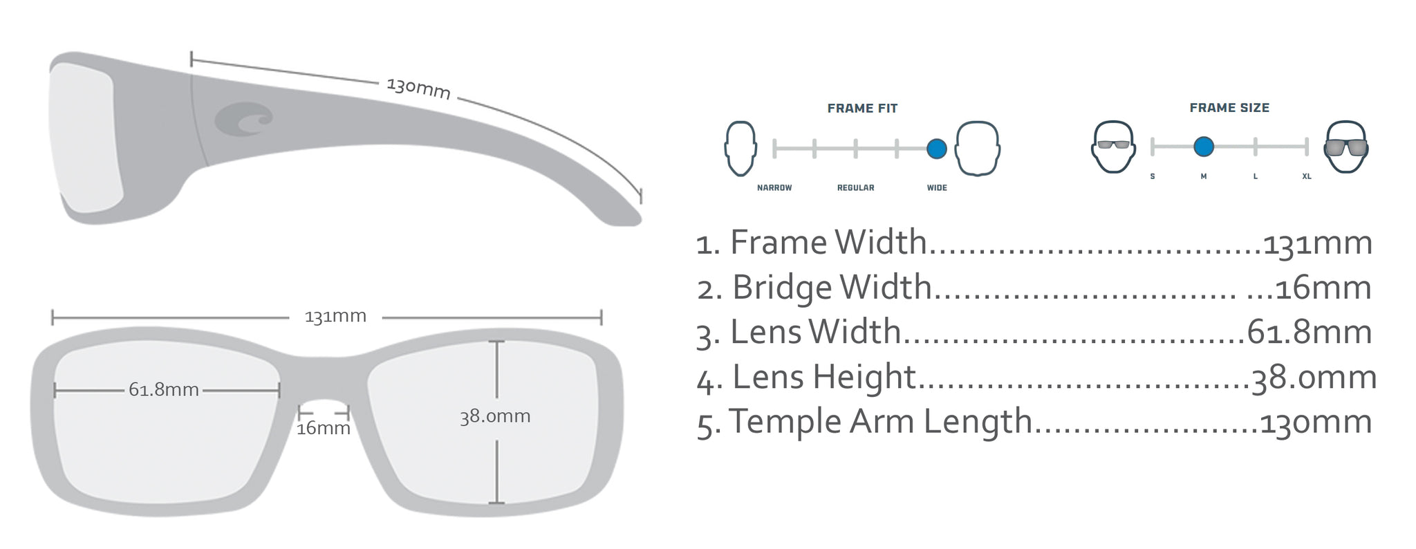 • Lens Size: 61.8 mm width, 38 mm height, 16 mm bridge