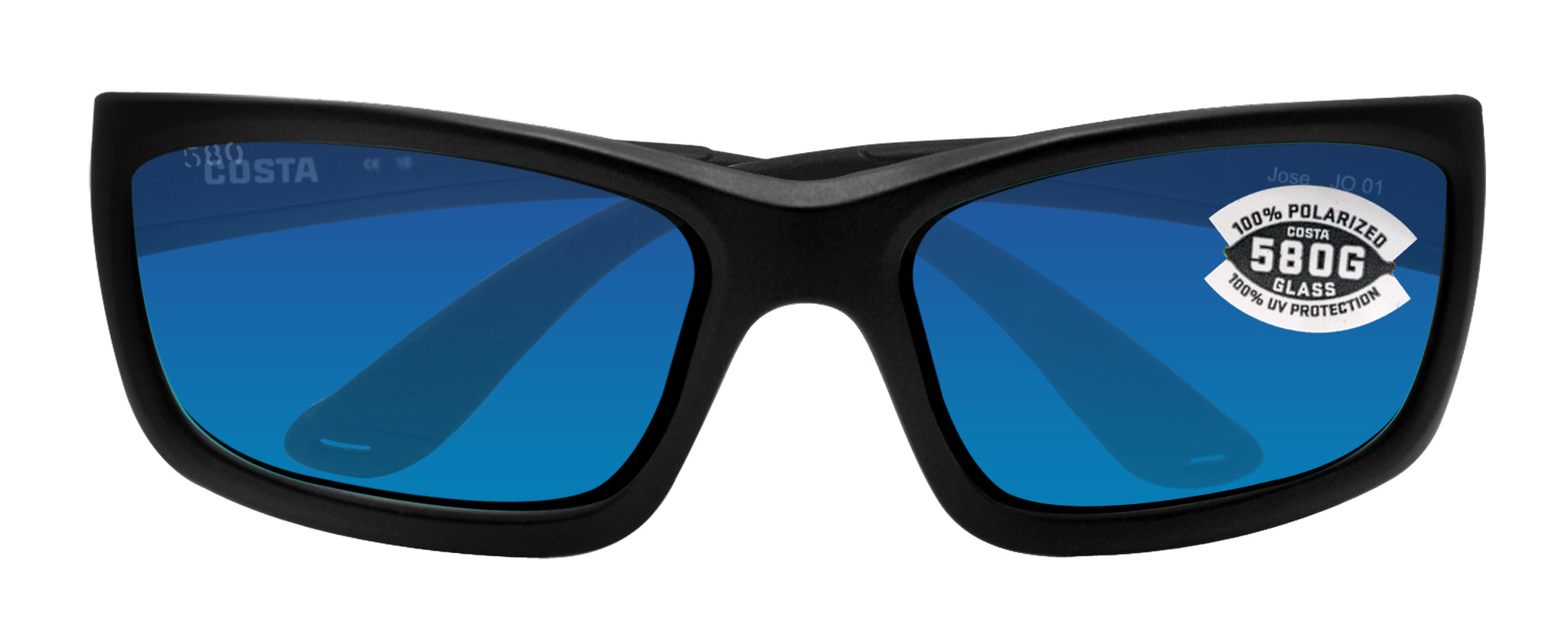 Costa Del Mar Jose Blackout Frame Blue Mirror 580G Glass Polarized Lens