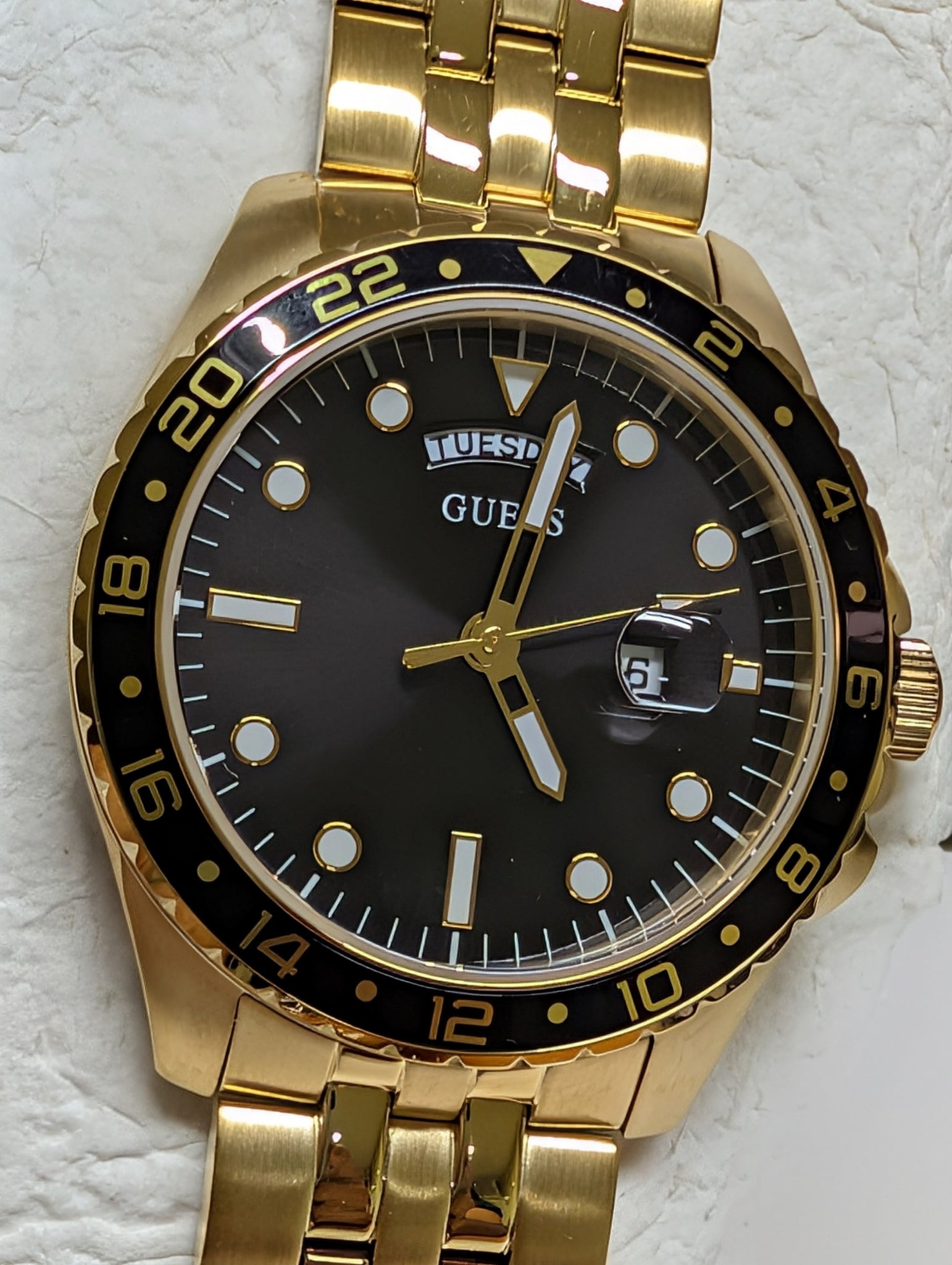 Guess Men's Watch Gold Tone Classic Day-Date GW0220G4