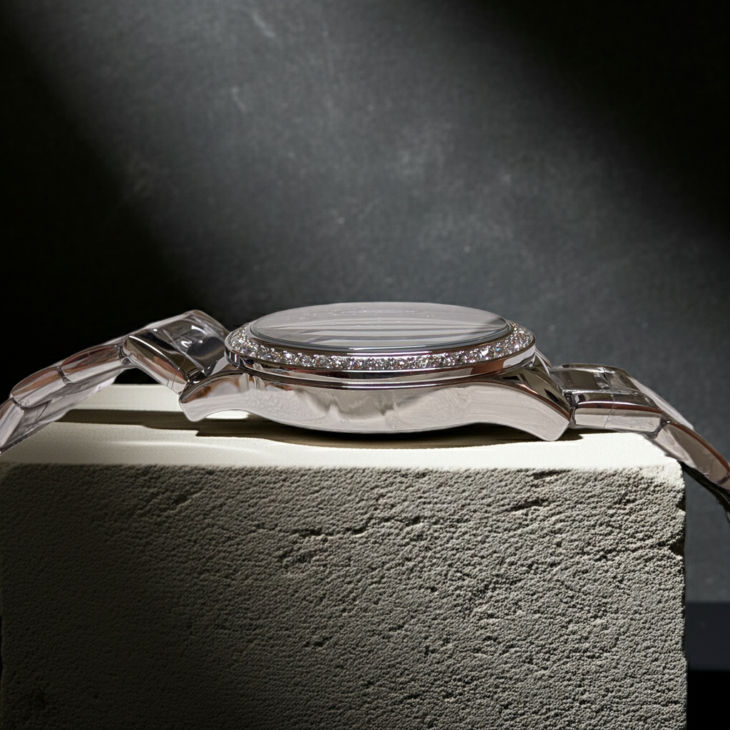 • Strap: Silver stainless steel link bracelet, 18 mm width