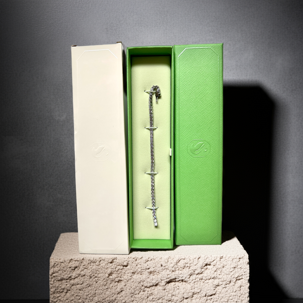 The Matrix Tennis bracelet is a timeless piece that will always be in style! This bracelet features a classic combination of dazzling clear stones and cool rhodium plating. The crystals are designed to beautifully reflect the light, ensuring your wrist sparkles. It's a wonderful piece to treat yourself to or give as a thoughtful gift.
