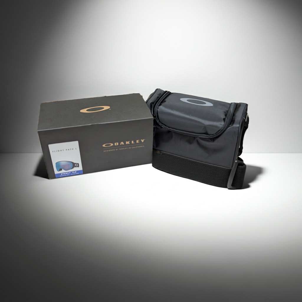 Box Includes: Oakley Flight Path L Goggle (Matte Black Frame / Prizm Sapphire Lens) and Microfiber Cleaning Bag.
