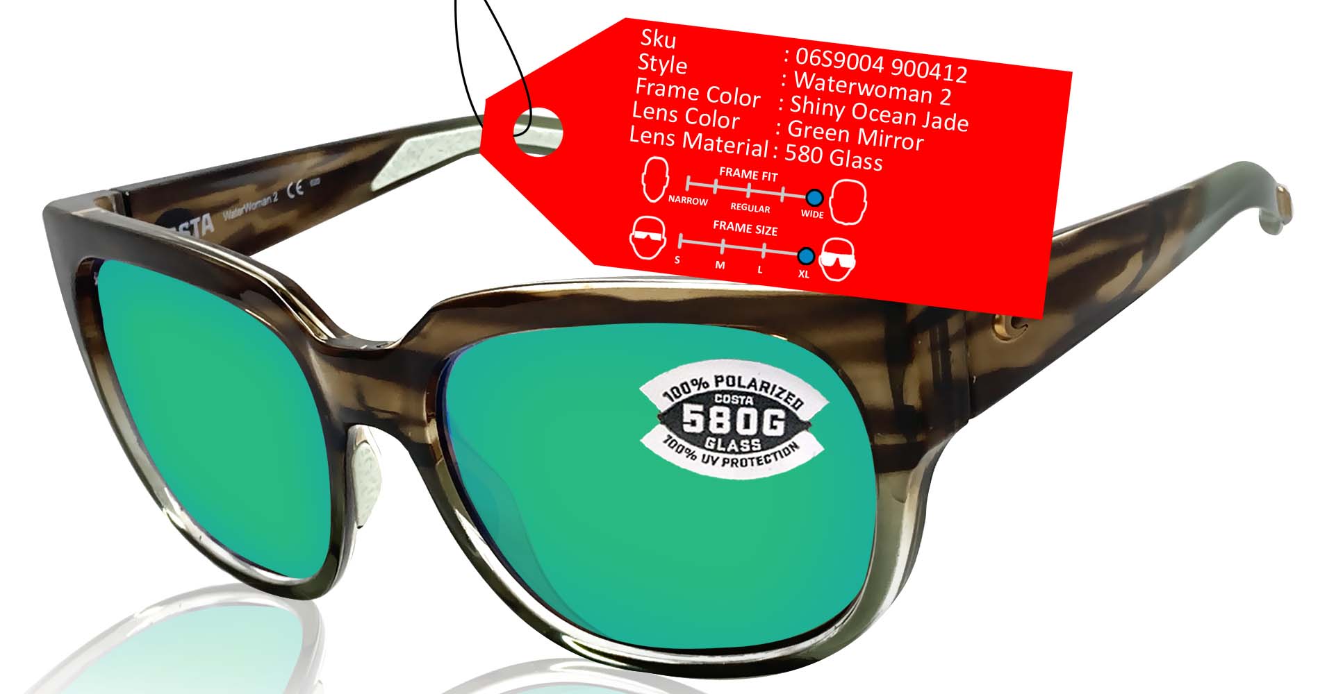 Costa Del Mar Waterwoman 2 Ocean Jade Green Mirror 580 Glass Lens Sunglasses