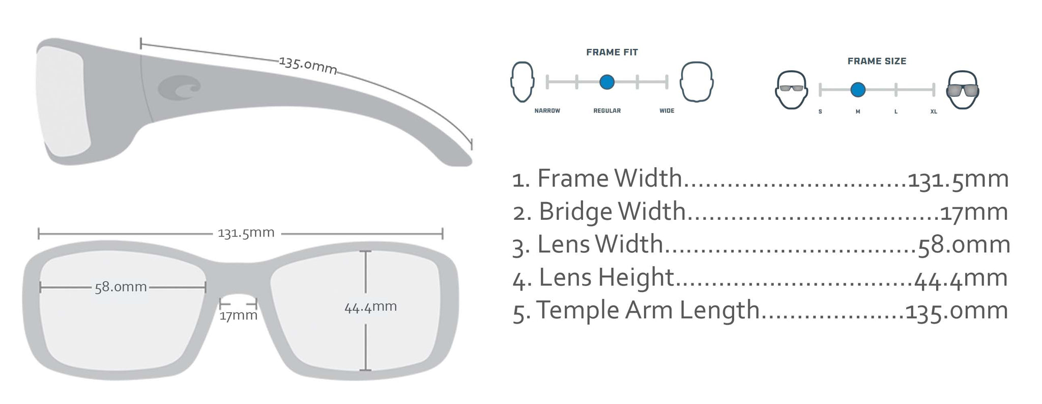 - Temple Length: 135 mm