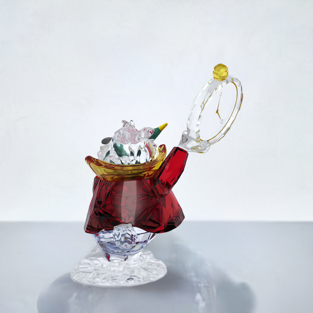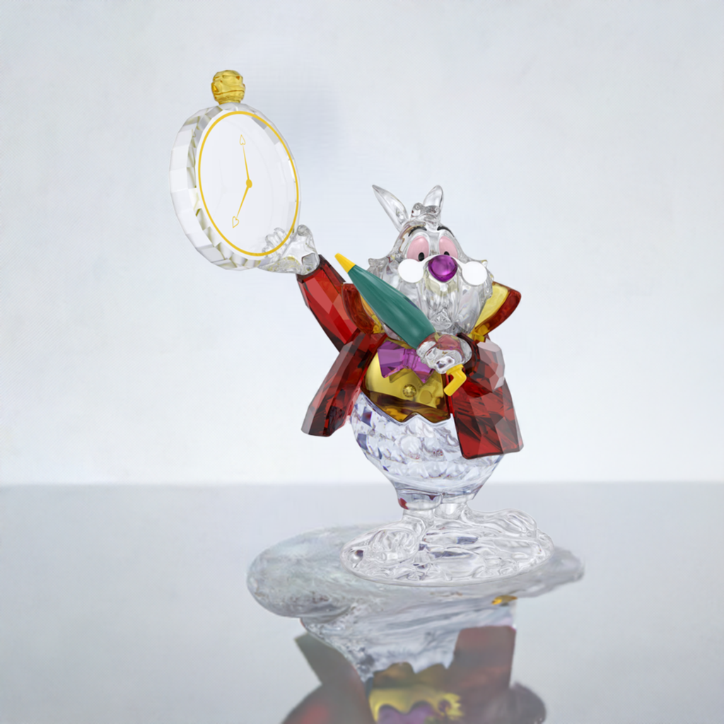 Embrace the magic of Wonderland with this exquisite Swarovski figurine. A timeless symbol of courage and opportunity, the White Rabbit is meticulously crafted with 302 facets, capturing every detail of his iconic appearance. From his colorful waistcoat to his signature pocket watch, this figurine is a stunning display of artistry. This intricate piece will add a touch of whimsy and wonder to your home décor. It's more than just a decoration – it's a reminder to seize every opportunity and embrace the unexpected. Important Note: This figurine is a collectible for adults and is not suitable for children under 15.